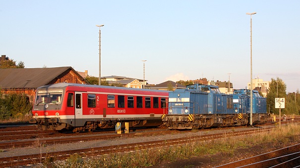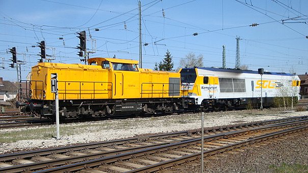 Den bayerischen Feiertag am Montag, 1. November 2010 nutzte unser Fotograf Markus Loy für eine Tour in den Raum Lobenstein. Da in Thüringen kein Feiertag war (dort ist der Reformationstag 31.10.2010 Feiertag) begegnete ihm dort eine neue Gravita 10 BB der Firma Voith mit einer Zugleistung für die BHT in Ebersdorf-Friesau. Die als 260 505-3 bezeichnete Gravita 10 BB (Voith 2010/10057) steht im Diensten der northrail GmbH, die die Loks für die DB AG bereitstellt, bis die mit den weiterentwickelten Dieselmotoren der Variante R43 ausgerüsteten DB AG Lokomotiven geliefert werden. Die Gravita wurde noch per PKW vom Personal der Herstellerfirma Voith begleitet. Auf dem Weg von Ebersdorf-Friesau nach Lobenstein führt die 203 658-8 (92 80 1203 158-1 D-ALS) den Zug. In Lobenstein gab es dann noch eine Begegnung mit dem planmäßigem 642 004-5 nach Blankenstein. Nächstes Ziel für die 260 505-3 und 203 658-8 war dann die Fa. ZPR in Blankenstein. Weitere Info zur Voith Gravita 10 BB gibt es hier. Auf www.loks-aus-kiel.de können Sie die Geschichte der 260 505-3 (eigentlich 261 005-3) nachlesen! |
