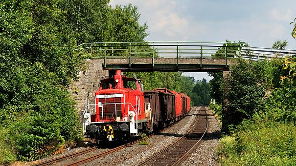 Netzbedingte Umleitungen sind aufgrund der derzeitigen Wettersituation nichts ungewöhnliches und kommen gar nicht so selten vor, ungewöhnlich ist die Länge des DGS 48340 (Cheb/CD - Könitz)! Er bestand nur aus dem ER 20-007 der Stahlwerk Thüringen GmbH (SWT) aus Könitz. Unser Fotograf H.S. Münchberg hatte rechtzeitig die Kamera zur Hand, um die Umleitung (netzbedingt) aufzunehmen. Es lohnt sich also - auch bei schlechtem Wetter - auf die Fotopirsch zu gehen. |