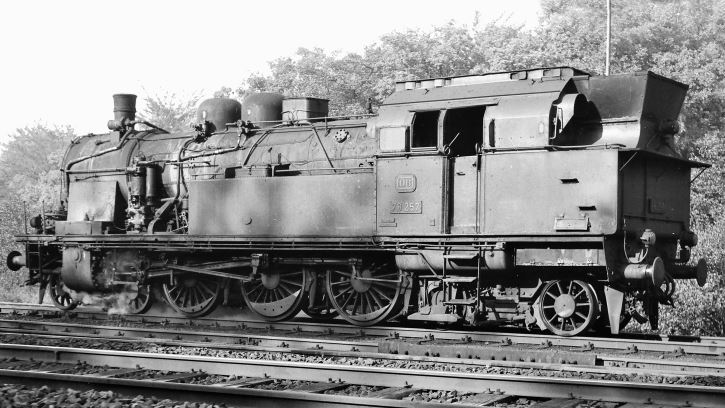 Die Wendezuglok 78 257 vom Bw Hamburg-Altona fährt zum Restaurieren in den Lokbahnhof Aumühle © Hannes Holz-Koberg im Oktober 1967. |