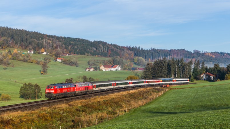 Früher Alltag, heute Fotosonderzug: Eine V100.20 mit Silberlingen. Foto: Christian Reuth |