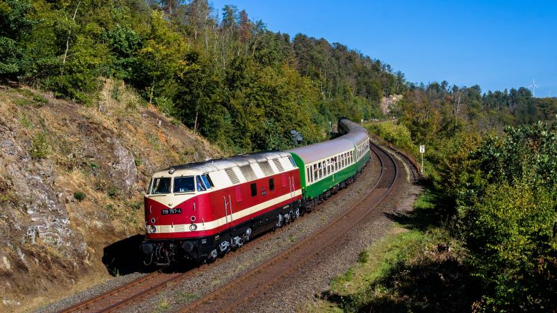 Der Dritte im Bunde ist Florian Fraaß aus Bad Berneck. Er war das ganze Jahr 2017 an der Frankenwaldrampe unterwegs, um den dortigen abwechslungsreichen Bahnbetrieb vor der Eröffnung der Neubaustrecke nach Erfurt zu dokumentieren. Foto: 120 145 mit einem IC auf der Frankenwaldrampe © Florian Fraaß |